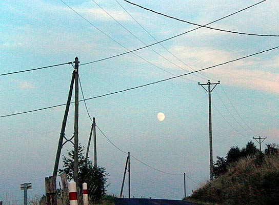 Paysage électriques, poteaux câblés, trop aériens pour se cacher de la lune et des terriens.