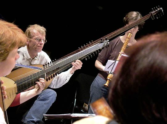 Le théorbe est un instrument dangereux par son encombrement, c’est peut-être pour cela qu’on en voit peu.