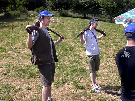 Le tir aux pigeons d'argile organisé par le comité des fêtes de Lérigneux a fêté ses 30 ans le weekend dernier. 30 ans ça fatigue, alors on prend la position de repos du tireur comme Cédric et Christophe.