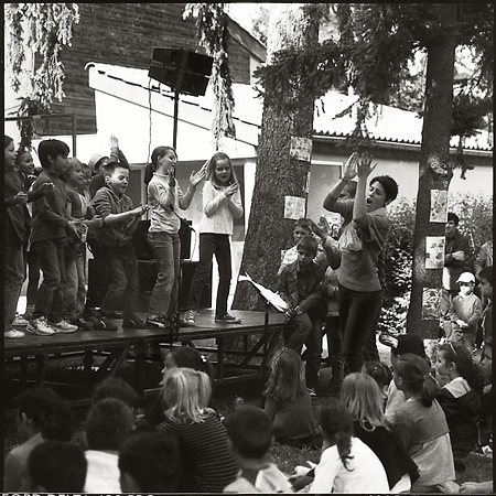 Samedi, la maîtresse s'est donnée à fond pour faire chanter les enfants.
