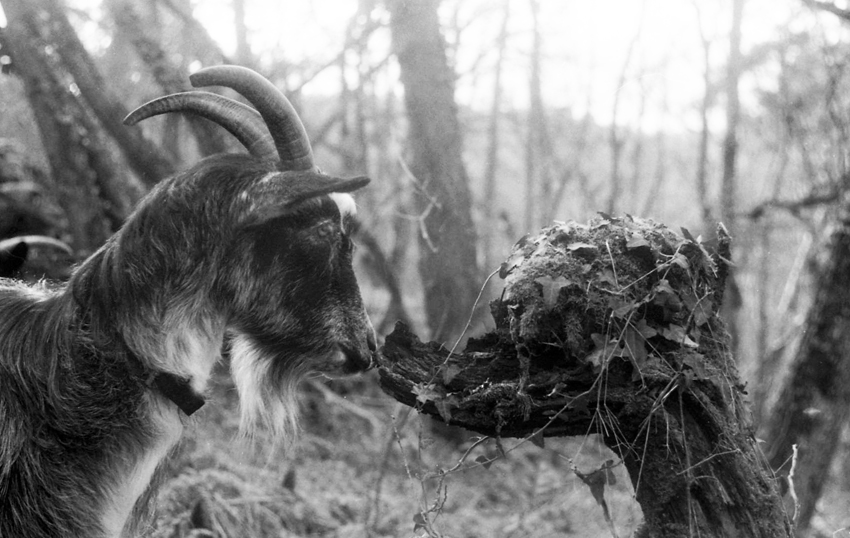 Rencontre entre un bouc et une créature de la forêt.