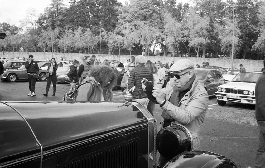 Grosse voiture à petite figurine en guise de bouchon de radiateur.