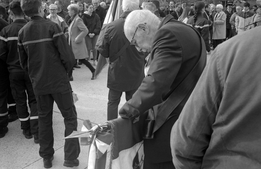 A la commémoration du 11 novembre les porteurs de drapeaux doivent déplier, enrouler, visser et dévisser toiles tricolores et mâts.