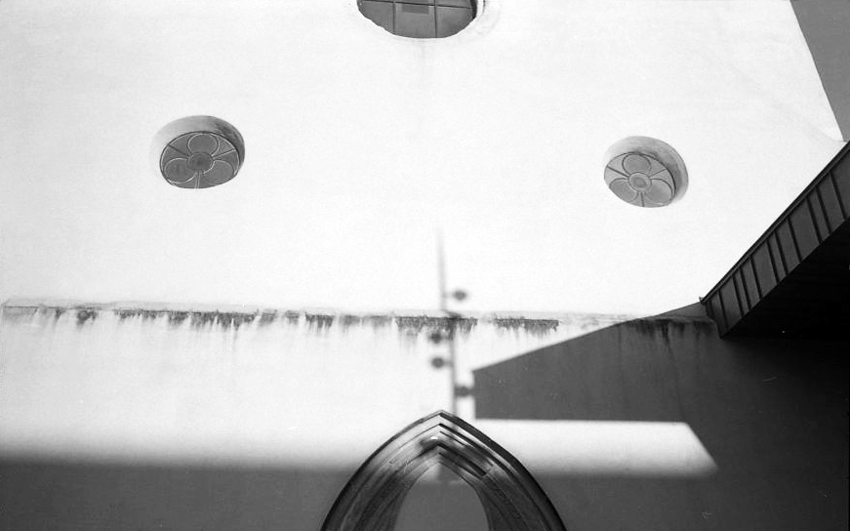 Façade de la médiathèque sous le soleil.